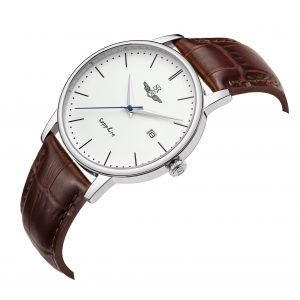 The SRWATCH SG1055.4102TE White CV Men’s watch with the white dial paired with the Genuine brown strap is a gorgeous combination of clean minimalism and timeless croc-embossed leather. To stand out with an impressive blue second hand. The dial and knobs are available in polished stainless steel (316L) stand out against an elegant white background, Japanese Quartz battery technology, scratch-resistant curved glass, and 5atm water resistance.