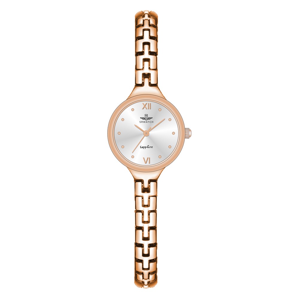 The SRWATCH SL22201.1302 is an elegant women’s watch with a round white dial and a sophisticated rose gold case. The bracelet-style strap features small links, providing a light and luxurious feel when worn.