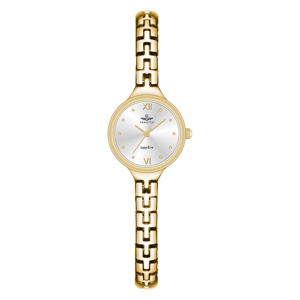 The SRWATCH SL22201.1402 is an elegant women’s watch with a round white dial and a sophisticated gold case. The bracelet-style strap features small links, providing a light and luxurious feel when worn.