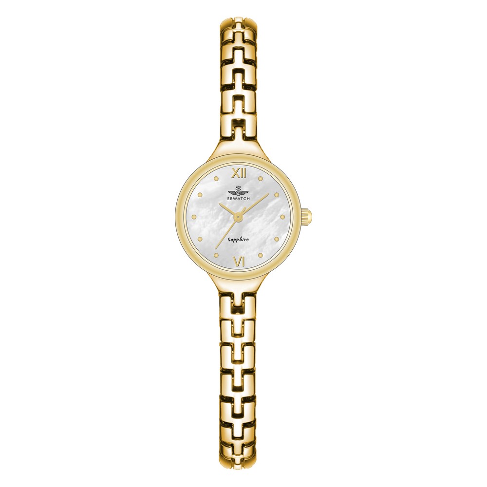 The SRWATCH SL22201.1402P is a women’s watch featuring an elegant white mother-of-pearl round dial with a sophisticated gold case. The bracelet-style chain strap is delicate and provides a light and luxurious feel when worn.