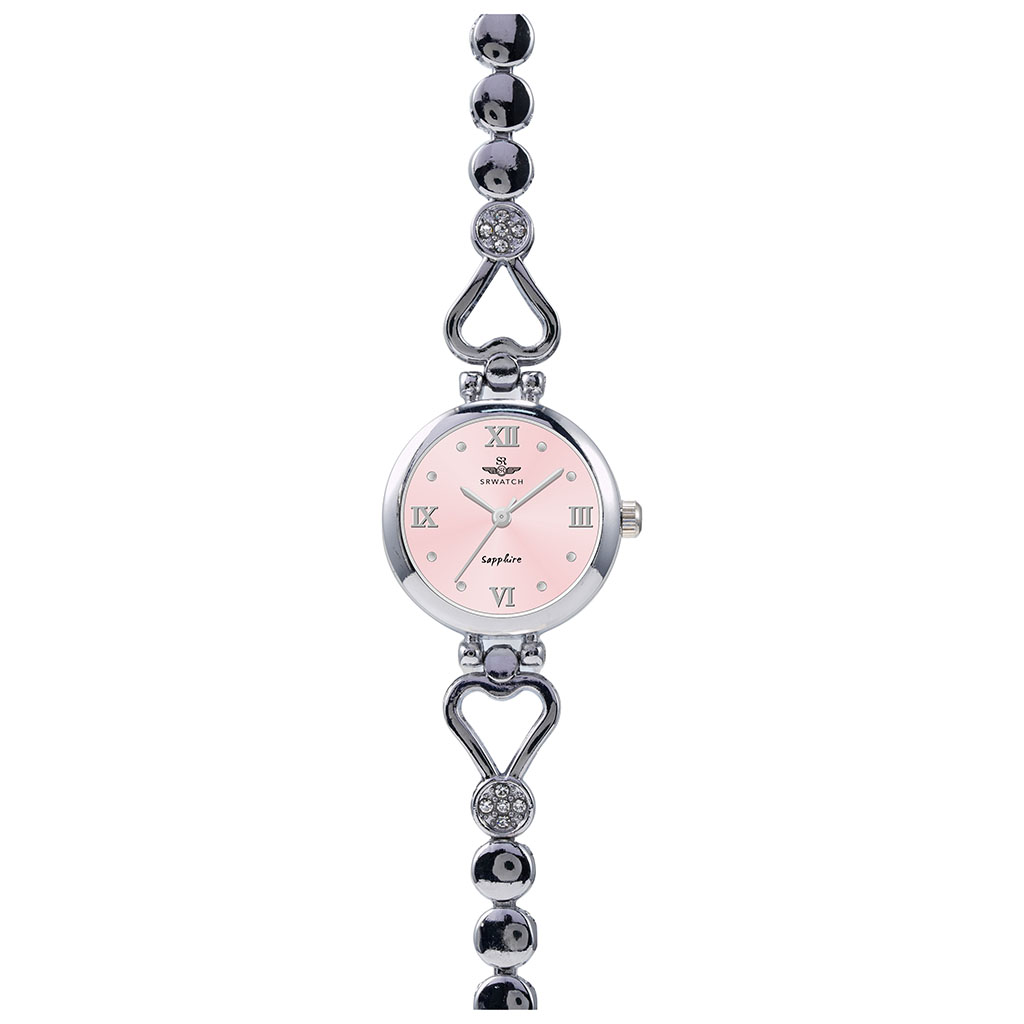 The SRWATCH SR-SL22202-1104 women’s watch, crafted from stainless steel, features a light pink round dial with simple, easy-to-read hour markers and a delicate, elegant, minimalist bracelet-style strap, easily complementing both casual and formal attire. Equipped with a sapphire crystal and 5 ATM water resistance, this watch offers timeless style and reliable daily performance, enhancing a modern, feminine look.