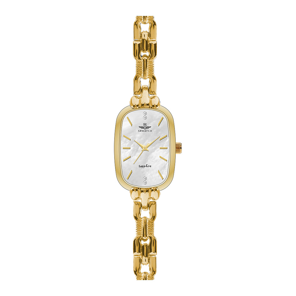 The elegant and minimalist SRWATCH SR-SL22204-1402P women’s watch is crafted from gold-plated stainless steel, featuring a slim case, a grey-white dial with simple, easy-to-read hour markers, and a delicate link bracelet, easily complementing both casual and formal attire. Equipped with a sapphire crystal and 5 ATM water resistance, this watch offers timeless style and reliable daily performance, enhancing a modern feminine look.