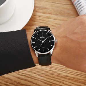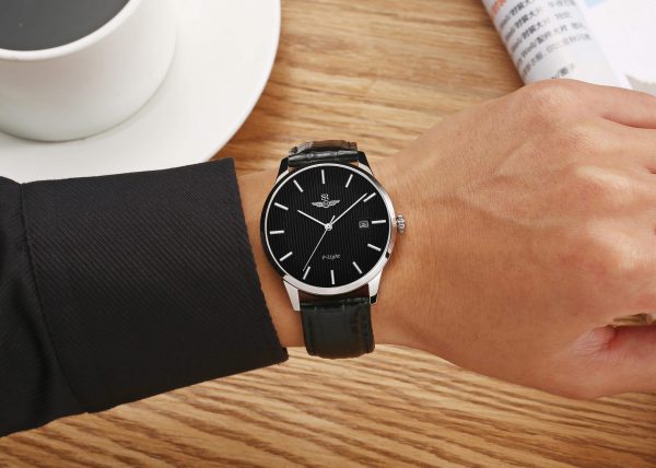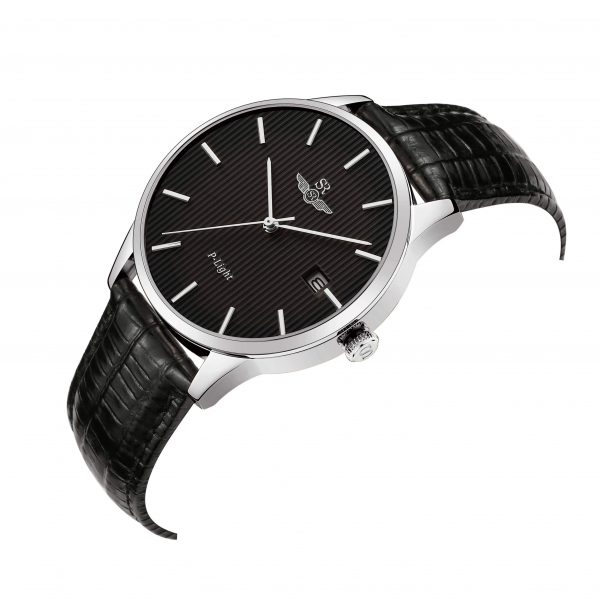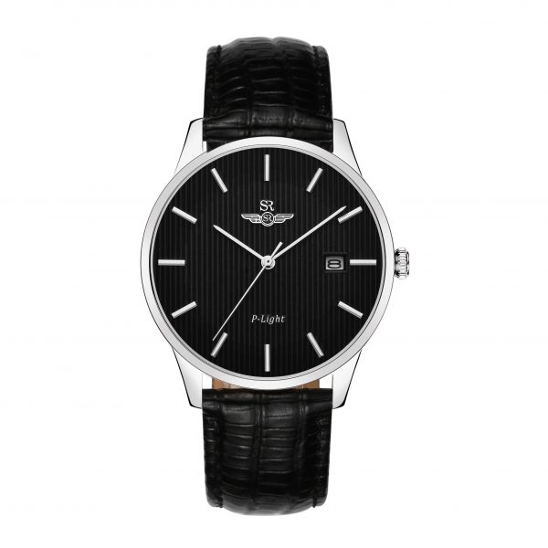 The SRWATCH SG10050.4101PL Black CV Men’s Watch features a round face design and premium black leather strap, scratch-resistant glass face, and day/date feature. The dial and knobs are available in polished stainless steel (316L) stand out on a black background for an elegant look. The P-light technology is at the heart of this watch.