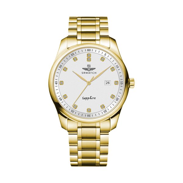 SRWACTH SG1070.1402TEメンズウォッチは、ラウンドフェイス、ゴールドケース、ゴールドのアワーマーカー、そして3本の針が、ラグジュアリーなホワイトダイヤルに映えます。文字盤には、高品質なPVDゴールドメッキのステンレススチールストラップが組み合わされています。傷に強いサファイアクリスタルと5気圧防水で、安心してお使いいただけます。便利な日付カレンダーも搭載しています。
