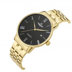The SRWATCH SG1074.1401TE Gold CV Men’s Watch features a black round face design and a luxurious gold metal bracelet. The SG1074.1401TE is available in polished stainless steel (316L) with refined gold plating. The black checkered stripe dial stands out with delicate gold hands to enhance the wearer’s elegance, Japanese Quartz battery technology, scratch-resistant sapphire glass, and 5atm water resistance.