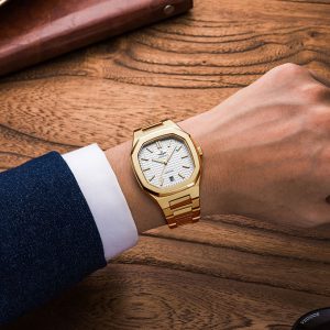 Strap: 316L Stainless Steel + Gold PVD Plating