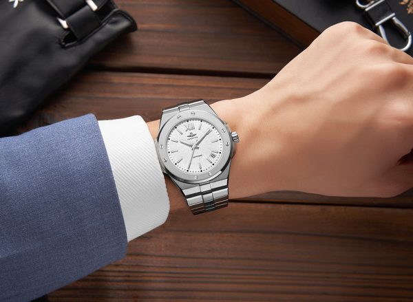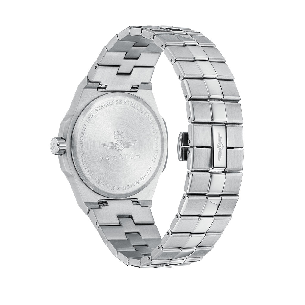 SRWATCH SG7009.1102GM men’s watch with round face, white case, white numbers in harmony with the white background of the watch. The watch face has a PVD white plated stainless steel case, combined with a stainless steel strap. Scratch-resistant sapphire crystal and 5ATM water resistance bring peace of mind to the user.