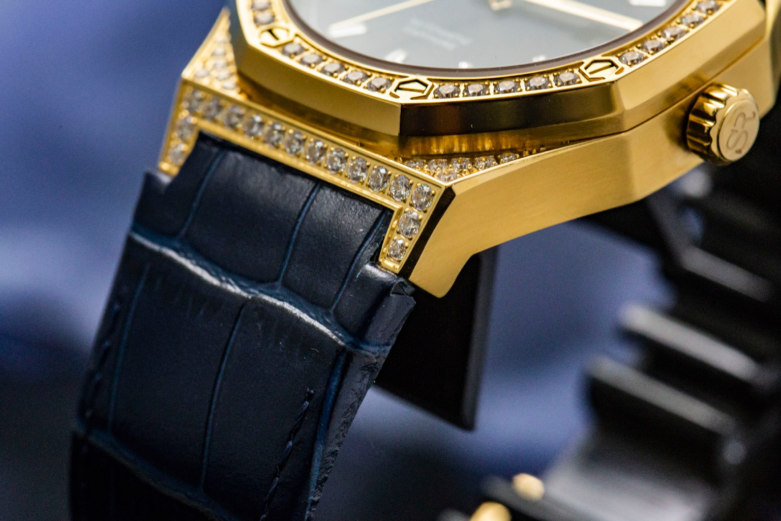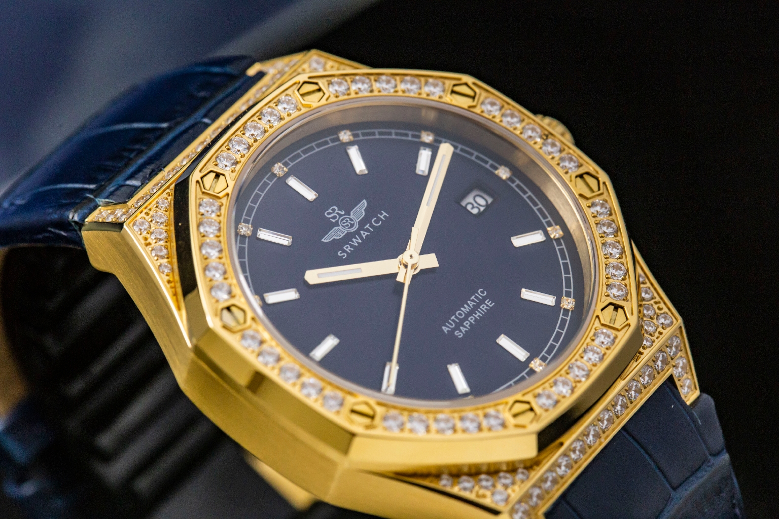 男性用レザーストラップウォッチSG99993.4603GLAは、豪華なデザイン、男性のための個性を備えています。時計ケースは316L金メッキPVDステンレススチール素材で作られています。上部には繊細な石がちりばめられています。エレガントなダークネイビーブルーのウォッチフェイスは、豪華な石で飾られたディジットパイルと調和して組み合わされ、着用者に魅力をもたらします。日本の装置は、日カレンダーのサポートに固執しています。時計は、高品質の傷のつきにくいサファイアガラスと5ATM防水規格で保護されています。