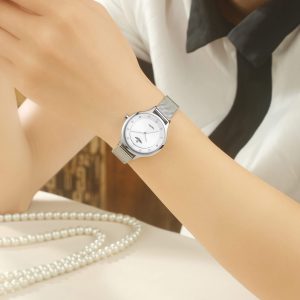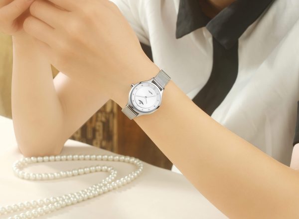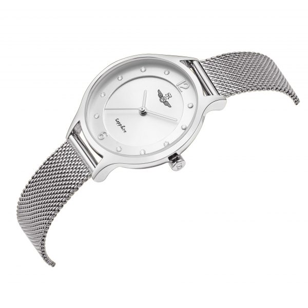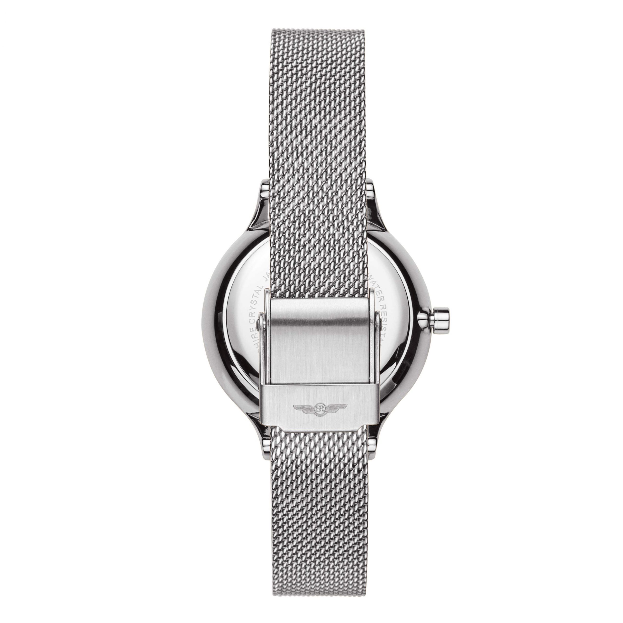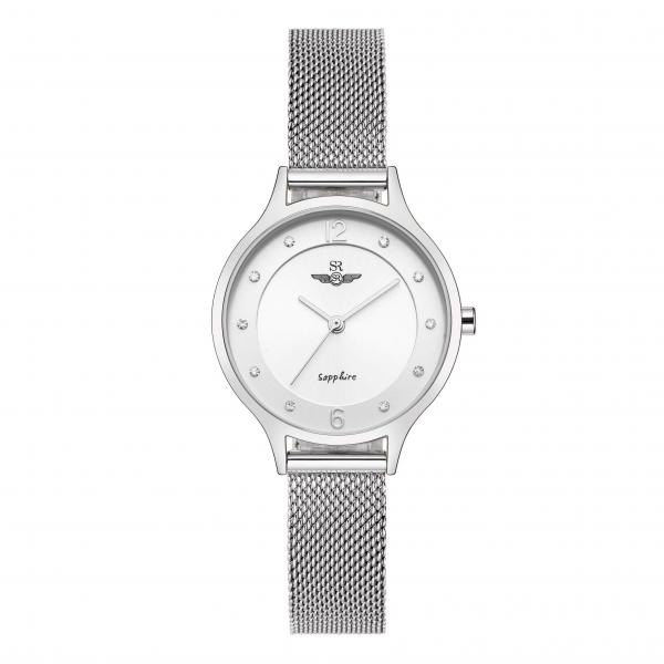 SRWATCH SL1605.1102TEレディースウォッチは、シルバーのラウンドダイヤル、様式化された針と文字盤、シルバーの金属フレーム、豪華なステンレススチール製のストラップを備えたエレガントなスタイルでデザインされています。