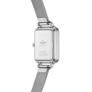 SRWACTH SL1610.1102TE women’s watch with rectangular face, white case, thin hour markers and 2 white hour hands in harmony with the white dial brings elegance and sophistication to women. Stainless steel strap, scratch-resistant sapphire crystal. The watch uses batteries, has a 5ATM water resistance standard, giving users peace of mind.