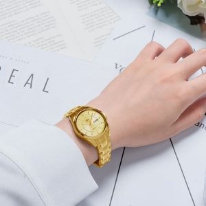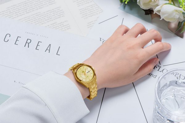 SRWATCH SL1901.1407TEレディースウォッチは、ラウンドフェイスデザインとメタルストラップを備え、モダンで豪華なデザインをもたらします。時計ケース、ストラップ、デジタルパイルは、金メッキのステンレススチールから細心の注意を払って機械加工され、PVDテクノロジーが施されています。3つの針が付いた時計と2つのカレンダーを示すウィンドウが使いやすくなっています。高品質の傷のつきにくいサファイアガラスと5ATM防水規格により、着用者の安心が保証されます。