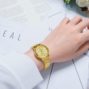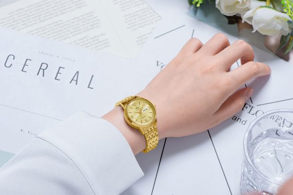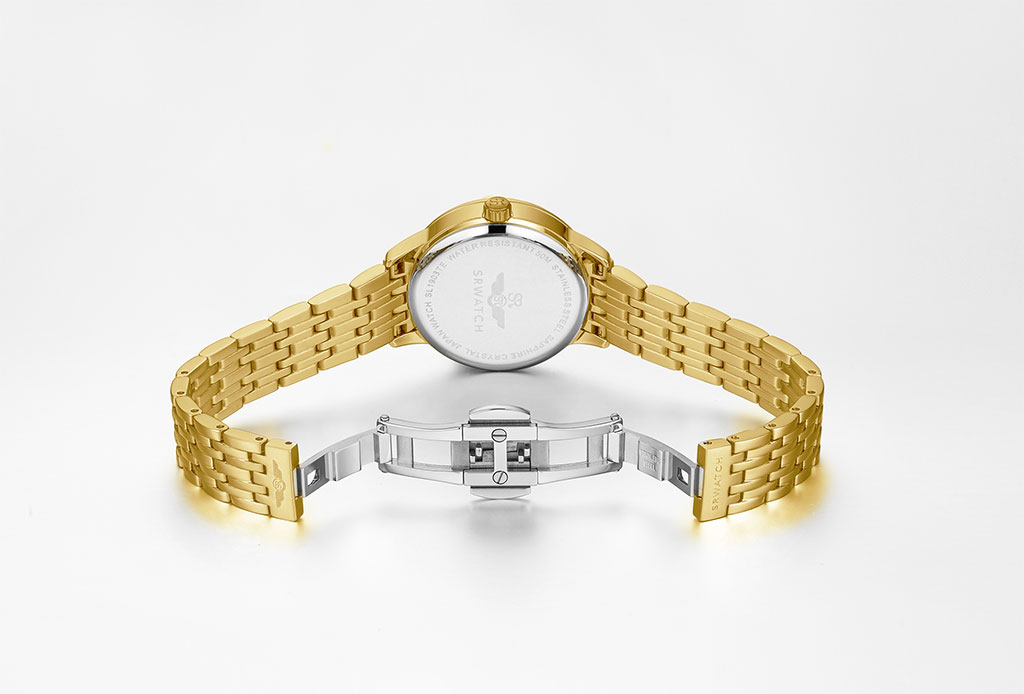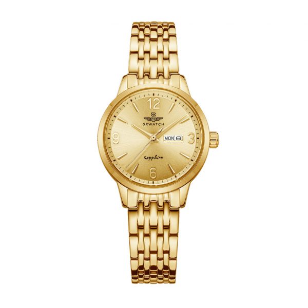 SRWATCH SL1903.1407TEレディースウォッチは、ラウンドフェイスデザインとメタルストラップを備え、モダンで豪華なデザインをもたらします。時計ケース、ストラップ、デジタルパイルは、金メッキのステンレススチールから細心の注意を払って機械加工され、PVDテクノロジーが施されています。3つの針が付いた時計と2つのカレンダーを示すウィンドウが使いやすくなっています。高品質の傷のつきにくいサファイアガラスと5ATM防水規格により、着用者の安心が保証されます。