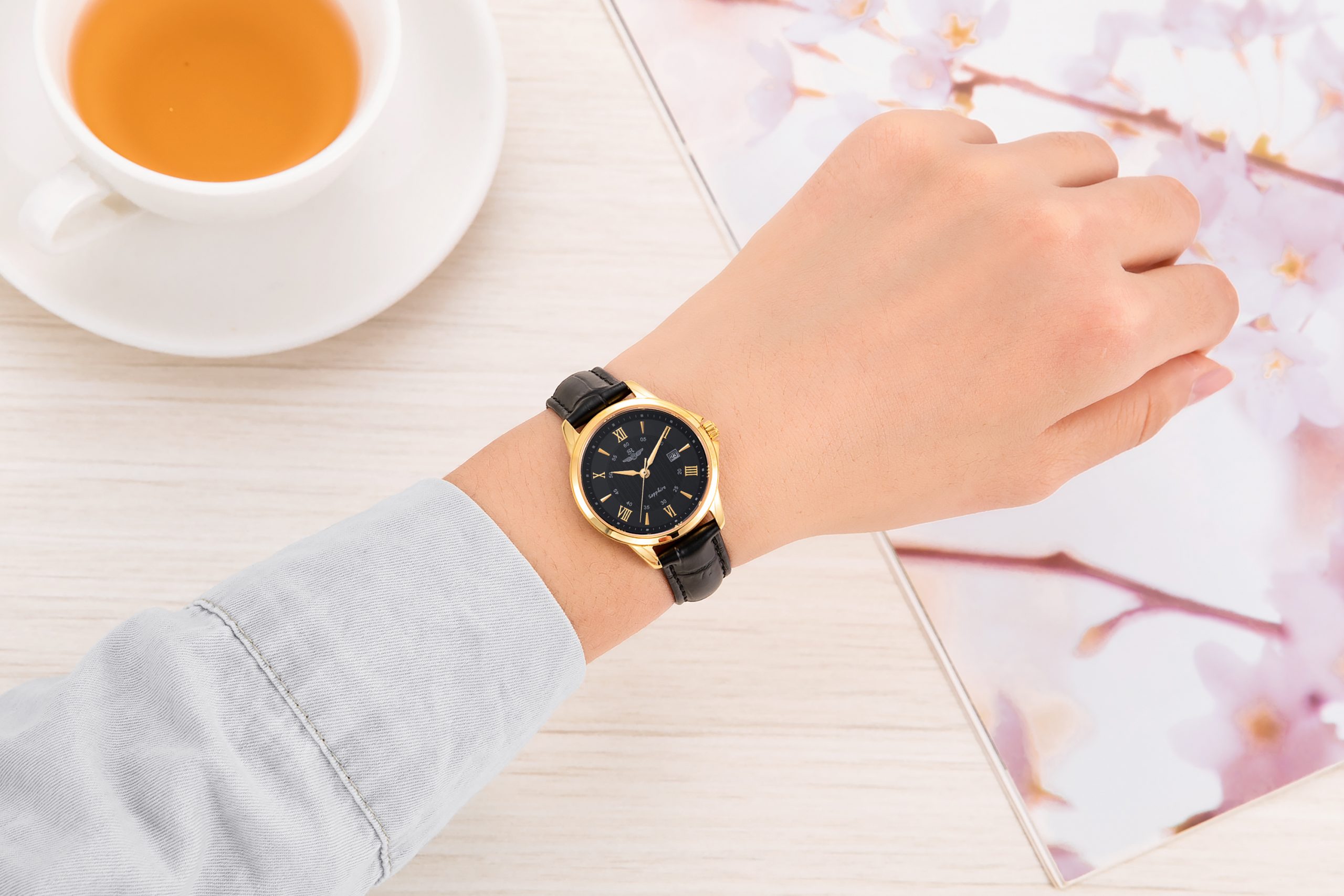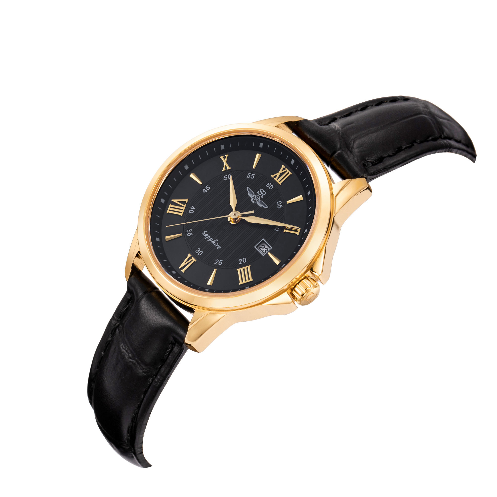 The SRWATCH SL3003.4601CV Women’s Watch features a black round face design and premium black leather strap. The SL3003.4601CV is available in polished stainless steel with refined gold plating stand out against the black background to enhance the wearer’s elegance. The 3-storey design dial creates a unique and fancy with alternating roman numerals, Japanese Quartz battery technology, scratch-resistant sapphire crystal, and day/date feature