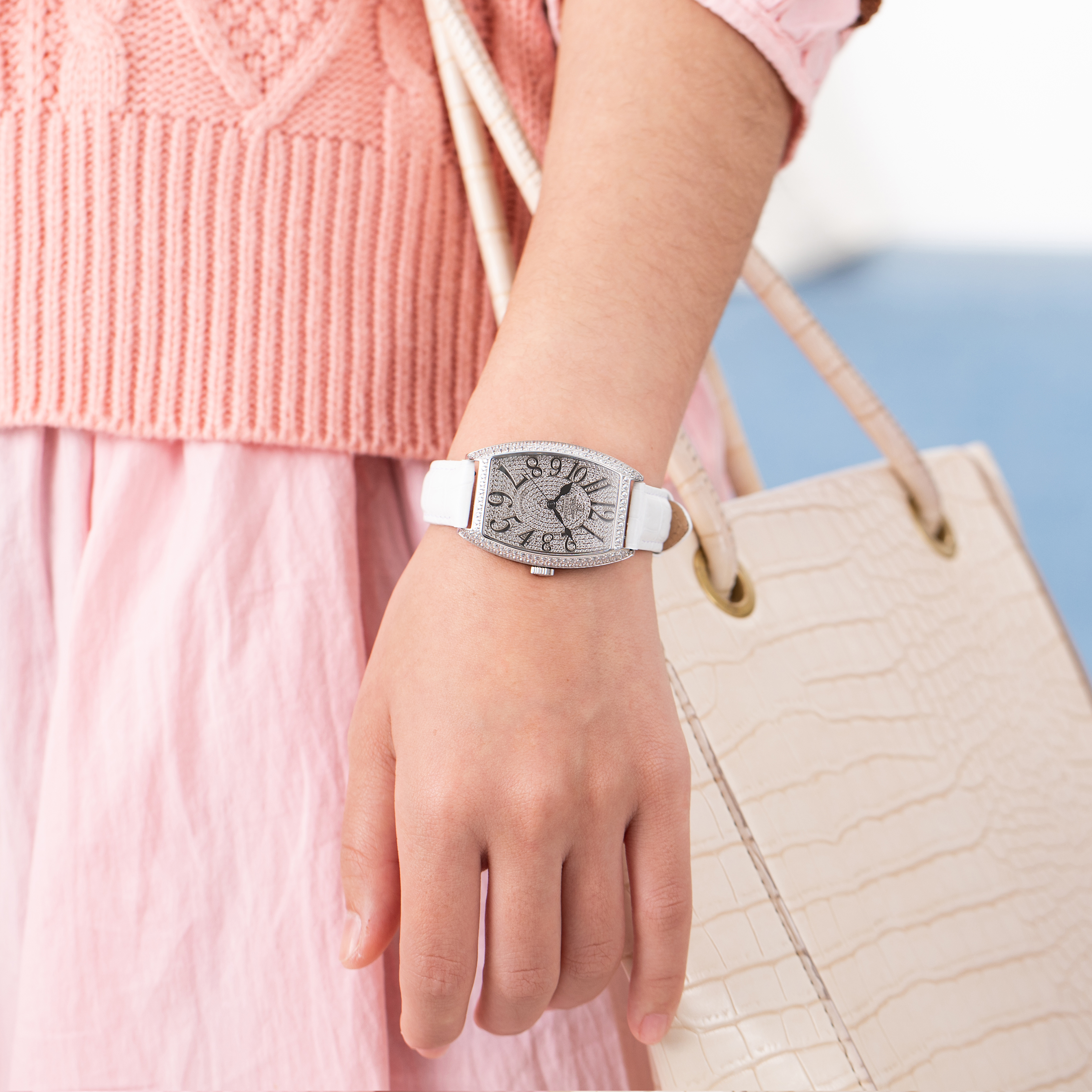 SL5001.4402BLレディースウォッチは、ステンレススティールケース、白いフェイス、ワイヤー、外殻の形に回転する桁パイルを備えた女性向けに豪華に設計されています。フェイスとケースには非常に洗練された石がちりばめられており、虹色のきらめく光の効果を生み出し、着用者に優雅さをもたらします。時計の文字盤は、高品質の傷のつきにくいサファイアガラス、5ATMの耐水性で保護されています。