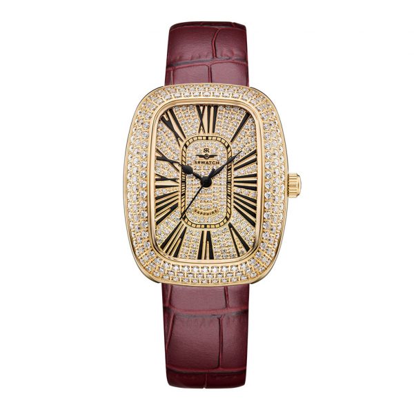 Women’s watch SL5009.6502BL with elegant and delicate rectangular face design. Gold plated 316L stainless steel case. Brown leather strap, gold-plated base with 3 hands and black roman numerals make it stand out. Scratch-resistant sapphire crystal with 5ATM water resistance standard.